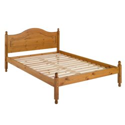 Scandinavia Double Bedstead - Frame Only. Solid pine bed frame with slats. Size (W)142.4, (L)198, (H)70cm. 30.3cm clearance between floor and underside of bed. ... Read Content